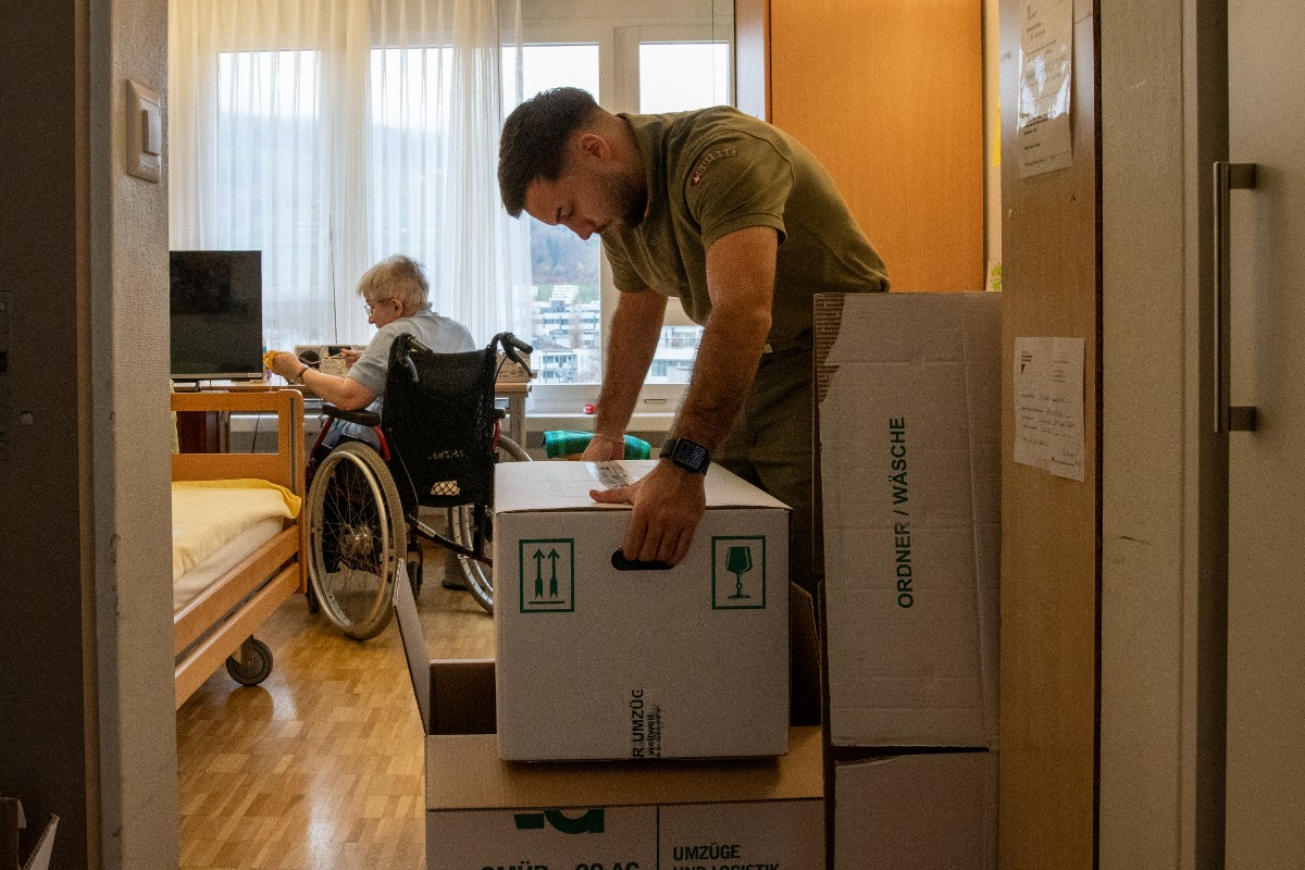 Die ZSOpilatus übernimmt beim Umzug zwei wichtige Rollen. Einerseits helfen die Zivilschützer beim Verpacken der persönlichen Gegenstände der Bewohnenden, welche diese Aufgabe nicht mehr selbständig übernehmen können. Insgesamt haben die Zivilschützer so über 2’000 persönliche Gegenstände verpackt. «Es entwickeln sich schöne Dynamiken, wenn die Zivilschützer gemeinsam mit den Bewohnenden die privaten Sachen für den Umzug verpacken.», meint Jonas Schneider.