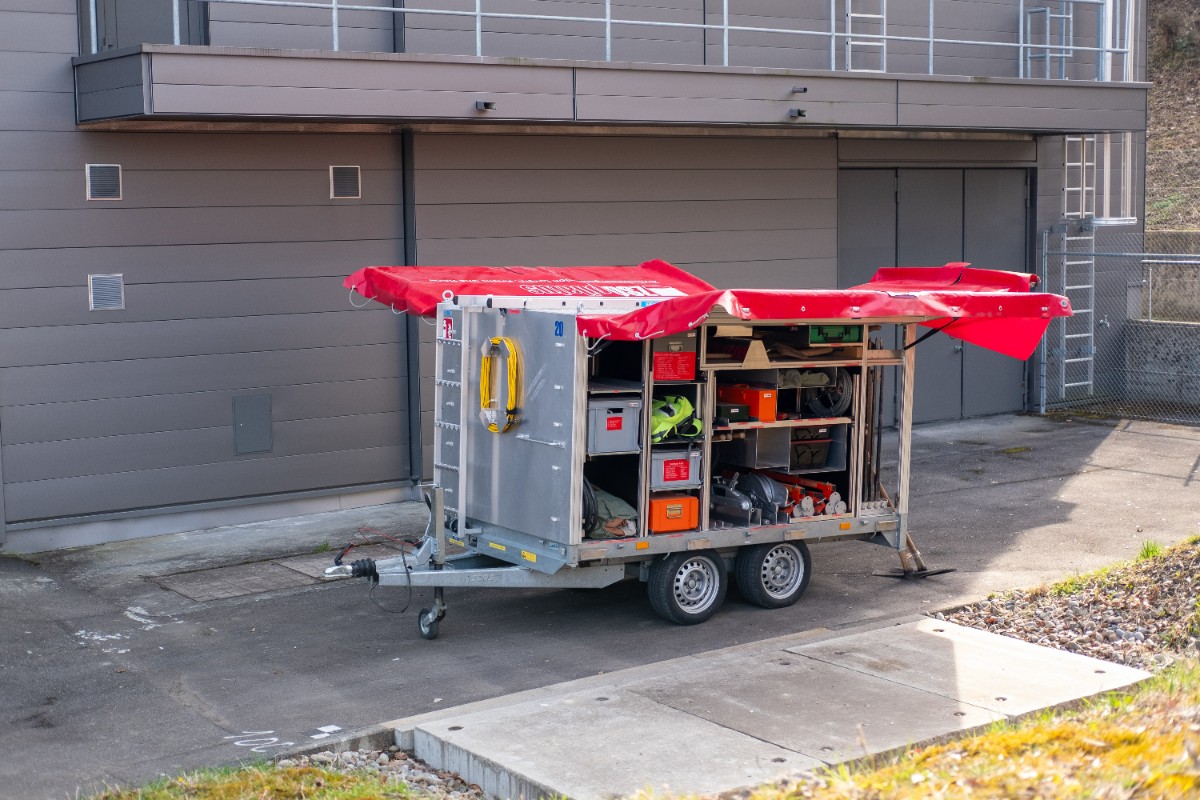 Am Dienstagmorgen traf sich die Mannschaft und die Vertreter der Mediengruppe bei strahlendem Sonnenschein in der Zentrale. Unter der Leitung von Patrick Ulrich (Zugführer Pionier) machten sie sich mit zwei Fahrzeugen und einem Anhänger auf den Weg nach Horw.